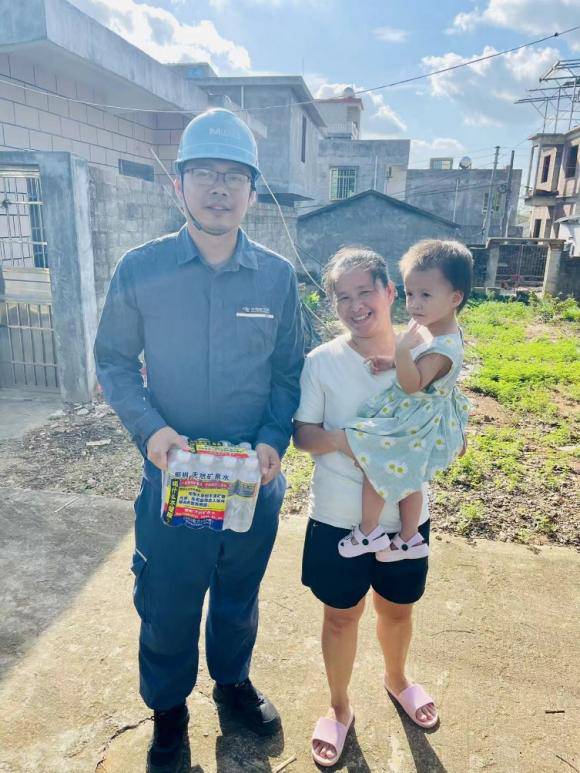 “這么熱的天你們還一直暴曬在太陽底下忙著幫我們通電,你們要多喝水防止中暑,要多吃點(diǎn)東西,不要餓著肚子干活”9月18日下午,在海南省澄邁縣金馬大道新村仔農(nóng)場(chǎng)的搶修現(xiàn)場(chǎng),熱心的村民大姐左手抱娃右手提著礦泉水和八寶粥送到搶修人員的手中,搶修隊(duì)員跟大姐握手表示感謝。這一幕溫馨的場(chǎng)景,是公司搶修隊(duì)伍與當(dāng)?shù)厝罕姷摹半p向奔赴”,彰顯了電力施工企業(yè)與人民之間深厚的魚水情誼。在困難與挑戰(zhàn)面前,他們攜手并肩,共同譜寫了一曲動(dòng)人的贊歌。