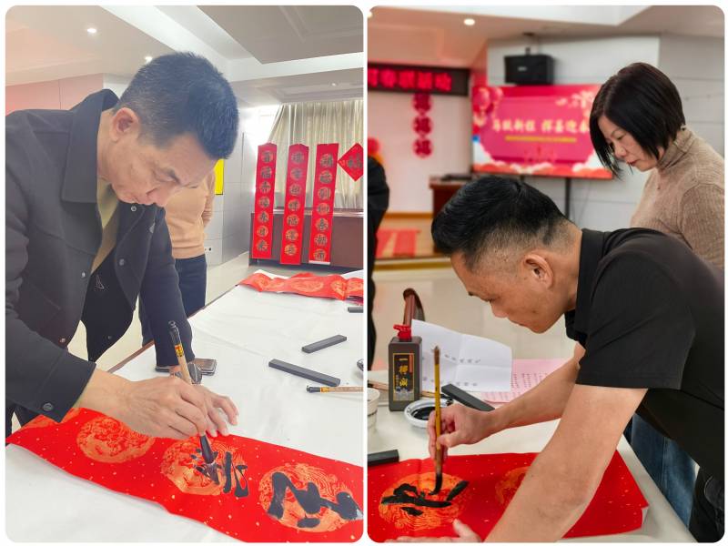 集團領(lǐng)導(dǎo)班子與職工們積極參與,有的駐足欣賞書法創(chuàng)作,有的認(rèn)真挑選春聯(lián)內(nèi)容,有的排隊等待專屬定制。職工們手持墨跡未干的春聯(lián)和“福”字,笑容洋溢,紛紛表示手寫春聯(lián)更具溫度與年味,在感受傳統(tǒng)文化魅力的同時,也體會到集團大家庭的溫暖。